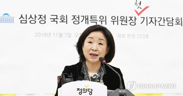국회 정치개혁특별위원회 심상정 위원장이 7일 오전 국회에서 열린 정개특위 관련 첫 기자간담회에서 발언하고 있다.