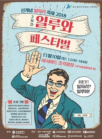 부산시(시장 오거돈)는 기존 일자리 축제의 틀을 깨고 모든 시민이 다양한 일자리정보와 즐거운 체험을 함께 할 수 있는 「2018 일루와 페스티벌(이하 ‘일루와 페스티벌’)」을 11월 10일 정오부터 오후 6시까지, 사직종합운동장 조각광장에서 개최한다고 밝혔다.