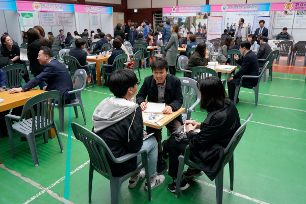 서울 동대문구는 지난 10일 구청 2층 다목적강당에서 ‘고교 진학 정보 박람회’를 개최했다. ▲자사고 2개교(경희고·대광고) ▲자공고(청량고) ▲특성화고 3개교(정화여상·해성국제컨벤션고·휘경공고) ▲일반고 6개교(경희여고·동대부고·해성여고·휘경여고·휘봉고) 등 11개 학교가 참여한 이날 박람회에는 지역의 많은 학생과 학부모가 찾아 상담을 진행했다. 사진은 진학상담이 진행 중인 모습. (사진제공=동대문구청)