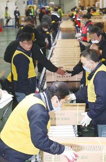 12일 오전 세종시 한 인쇄공장 관계자들이 대학수학능력시험용 문제지와 답안지를 전국 시험 지구별로 배부하고 있다.