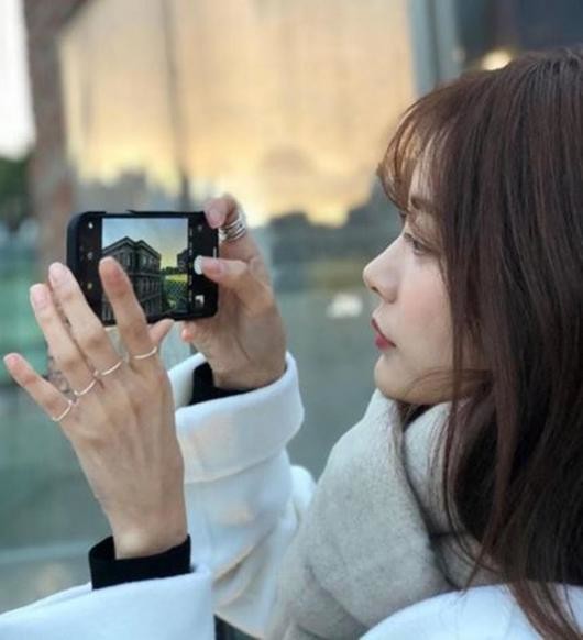공개된 사진속 송다은은 핸드폰으로 노을 지는 모습을 찍고 있다.