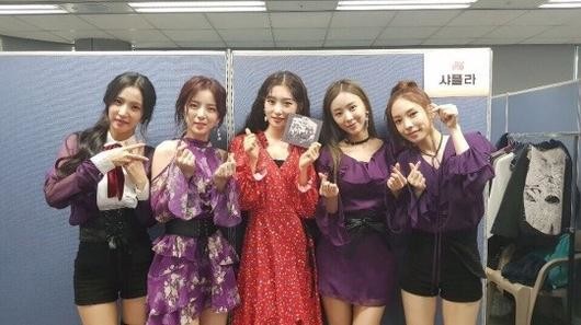공개된 이미지 속 샤플라 네 멤버는 ‘인기가요’ 대기실에서 정채연에 데뷔 앨범 CD를 선물한 후 함께 카메라를 바라보며 포즈를 취하고 있다.