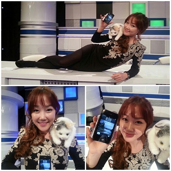 김장훈의 말대로 공개된 사진속 낸시랭은 방송 세트로 쓰인 탁자위에 요염한 자세로 누워 독도로 배경화면을 바꾼 자신의 휴대전화를 들고 자랑하고 있다.