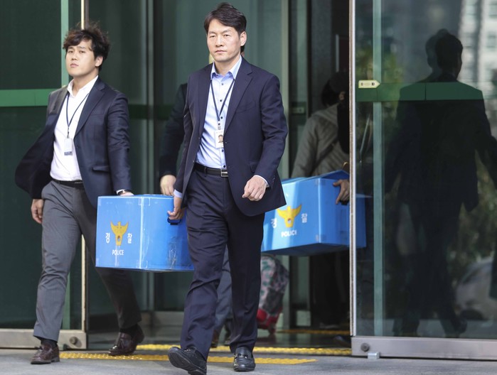 경찰이 국회의원 상대로 불법 후원금을 제공한 의혹을 받는 한국어린이집총연합회(한어총) 사무실을 압수수색해 자료 확보에 나섰다. 서울 마포경찰서는 13일 오전부터 한어총 사무실과 한어총 국공립분과위원회 사무실 등 2곳을 3시간 30분가량 압수수색했다고 밝혔다. 사진은 서울 한어총을 압수수색한 경찰이 압수품을 들고 건물을 나서고 있는 모습. /연합뉴스