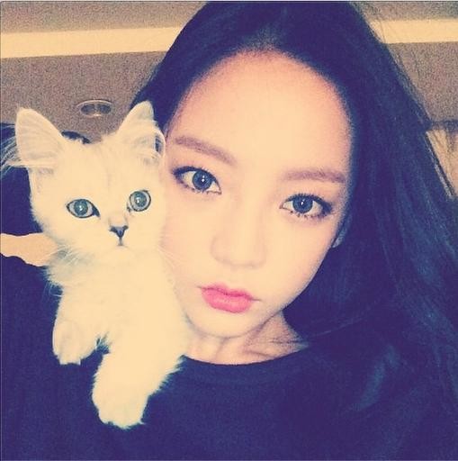 사진 속 구하라는 강렬한 아이 메이크업으로 또렷한 이목구비를 자랑하고 있다. 특히 구하라와 반려묘는 함께 카메라를 응시하며 닮은 듯한 느낌을 주고 있다.