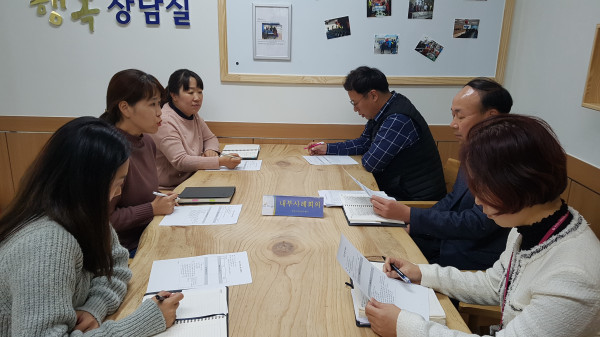 경기 동두천시 송내동 맞춤형복지팀은 13일 맞춤형 복지서비스 지원을 위한 내부 사례회의를 실시했다. 이날 회의는 송내동장과 수급자 담당자 및 사례관리팀 전원이 참석해 신규 발굴 대상자 1가구를 선정했다. 사진은 참여자들이 이야기를 나누고 있는 모습. (사진제공=동두천시청)