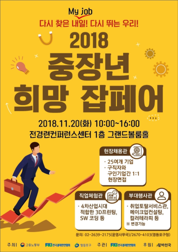 [시민일보=황혜빈 기자] 서울 영등포구(구청장 채현일)가 오는 20일 10시~오후 4시 전경련컨퍼런스센터 1층 그랜드볼룸에서 ‘2018 중장년 희망 잡페어’를 개최한다.