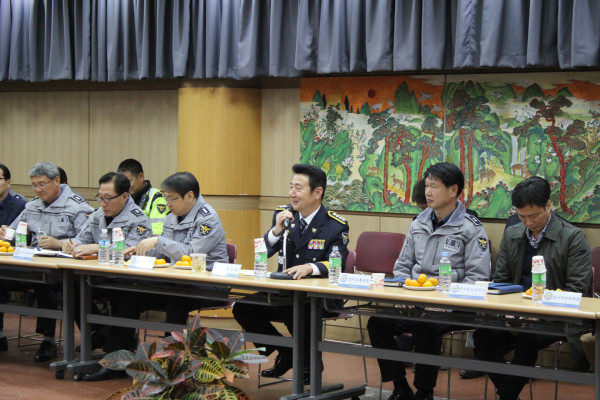 경기 이천경찰서는 지난 12일 장호원 행정복지센터 2층 회의실에서 장호원읍·설성면·율면 주민을 대상으로 ‘찾아가는 주민간담회’를 개최했다. 사진은 간담회에 참여한 고창경 서장이 발언하는 모습. (사진제공=이천경찰서)