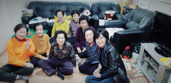 | ▲ 경로당을 방문한 김희숙 의원(왼쪽)이 경로당을 이용하고 있는 노인들과 함께 즐거운 시간을 보내고 있다. (사진제공=송파구의회) | ||