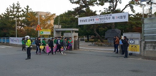 중앙동에 위치한 양산고등학교는 경상남도교육청 94(양산)지구 제 1시험장으로서 580여명의 수험생이 수능을 치렀다.