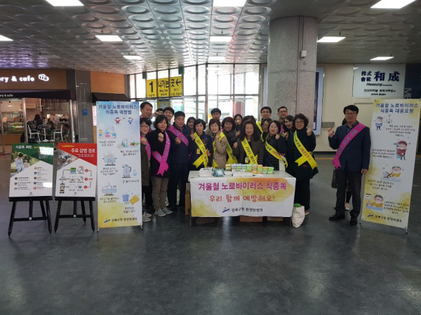 경기 안산시 상록구가 14일 안산시와 합동으로 시민들의 왕래가 많은 안산종합버스터미널, 롯데마트 및 성포동 홈플러스에서 ‘겨울철 식중독 등 식품안전사고 예방 캠페인’을 전개했다. 사진은 캠페인 참가자들이 기념 촬영을 하고 있는 모습. (사진제공=안산시청)