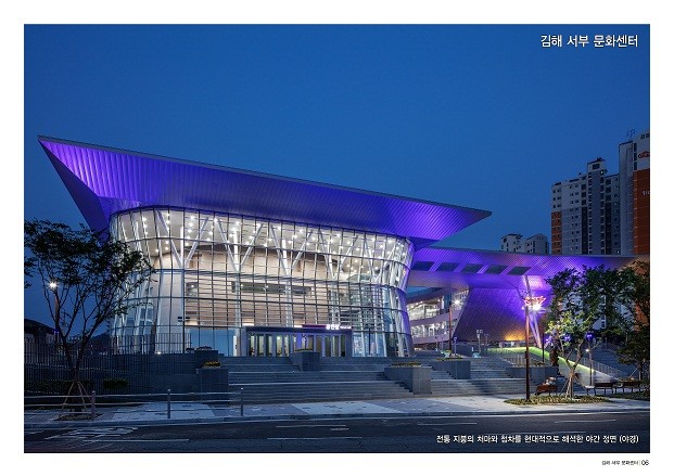| ▲ (서부문화센터전경 김해서부문화센터(김해시는 율하동 1377 소재, 설계 : 다울 건축사사무소)가 ‘제19회 김해 건축대상제’ 대상 작품으로 선정됐다. 김해 건축대상제는 도시경관 개선에 기여한 우수 창작 건축물을 발굴·시상하고 김해건축의 미래를 제시하기 위해 매년 시행하고 있으며 올해 19번째를 맞고 있다. 이번 건축대상제 공모에는 주거, 상업, 종교시설 등 포함해 총 20점이 응모했으며, 이들 작품에 대한 심사를 거쳐 대상 1점과 우수 2점, 장려 2점을 선정했다. ‘김해서부문화센터’는 다양한 내․외부 공간의 형성을 통한 커뮤니티 시설의 질적 수준을 높였다는 평가를 받았다. 전체적인 주변 경관과의 조화로움과 아울러 시설의 다양성 및 건축적인 차별성을 통해 지역시설의 구심점 역할을 담당할 수 있는 가능성을 인정받아 대상에 선정됐다. 12월 1일 정례조회시 선정된 작품의 건축주와 설계자에게 각각 동판과 상패를 수여할 예정이다. |
