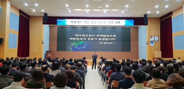 이번 교육은 급변하는 한반도 환경변화에 따라 공직자의 안보의식을 고취하고, 올바른 국가관 확립을 위해 독도 전문가인 김삼권 강사를 초빙해 ‘독도를 통한 올바른 역사인식’이라는 주제로 진행됐다.