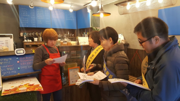 경기 용인시 처인구 생활민원과 직원, 환경미화원 30여명은 최근 김량장동 중앙시장 일대에서 쓰레기 무단 투기 방지를 위한 분리 배출 홍보물을 배부하는 등의 쓰레기 무단 투기 근절 캠페인을 진행했다. 사진은 캠페인 홍보물을 배부하는 모습. (사진제공=용인시청)