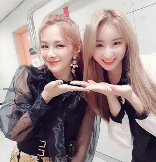 지난 16일 채연은 자신의 인스타그램을 통해 후배 가수 아이돌그룹 아이즈원의 이채연과 찍은 사진을 공개했다.