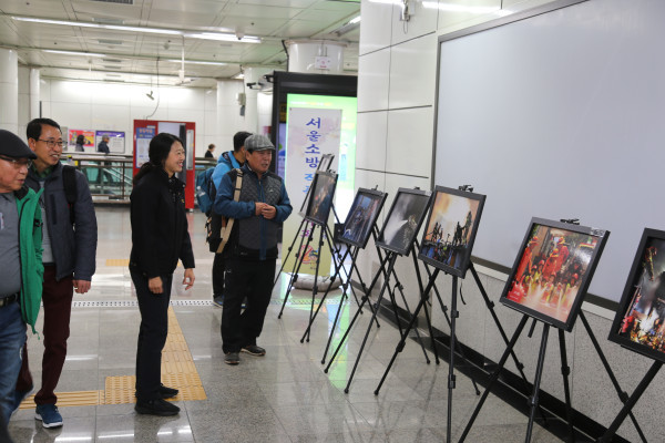 서울 종로소방서는 최근 광화문역사 종로구청 연결통로에서 '서울 소방안전 작품 전시회'를 개최했다. 이날 전시회는 이달 '불조심 강조의 달'을 맞이해 24개 소방서에서 한달간 릴레이로 진행되는 행사로 50여점의 역대 소방안전 작품공모전 입상작 및 몸짱소방관 화보를 전시했다. 사진은 시민들이 작품을 살펴보고 있는 모습. (사진제공=종로소방서)