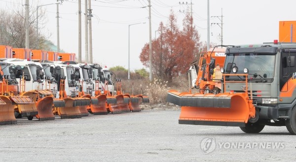 19일 오후 세종시 대평동에서 세종시청 주관으로 관계자들이 제설장비 기동훈련을 하고 있다.