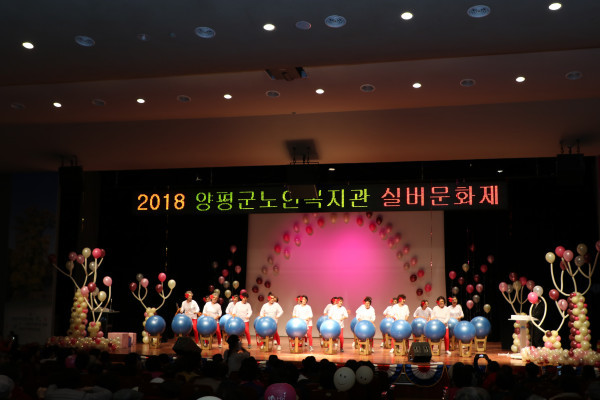 최근 경기 양평군노인복지관이 양평군민회관에서 노인 여가프로그램인 ‘평생교육프로그램’에 참여해 노인 약 400명을 대상으로 ‘2018 양평군노인복지관 실버문화제’를 실시했다. 사진은 참여자들이 공연을 선보이는 모습. (사진제공=양평군청)