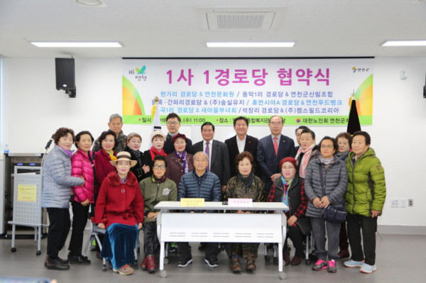 1사 1경로당 협약식은 연천군노인회지회에서 지속적으로 지역사회 후원자(기업·기관단체·독지가)와 경로당 간 협약을 통한 연계를 매년 추진하고 있으며 지속적으로 확대할 방침이다.