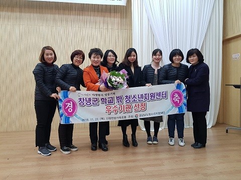 창녕군은 22일 산청한방가족호텔에서 열린 2018년 경상남도 청소년상담지도자대회에서 학교 밖 청소년 지원센터 우수 기관 상을 받았다.