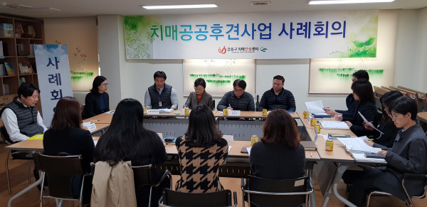 서울 강동구치매안심센터가 최근 무연고자 치매노인을 위한 공공후견 사례회의를 열고 지역사회 무연고자 치매노인의 공공후견 지원과 안전망 구축에 대한 내용을 논의했다. 사진은 공공후견 사례회의 진행 모습. (사진제공=강동구치매안심센터)
