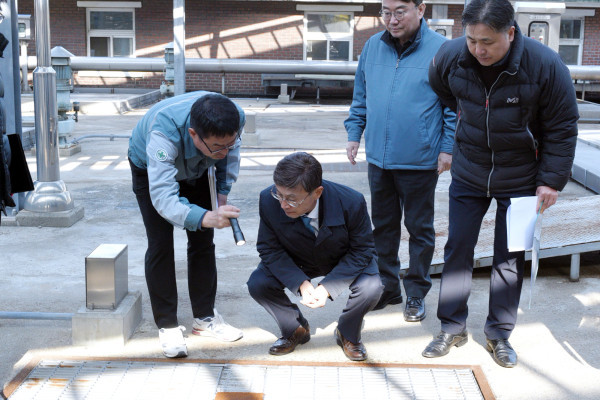 정하영 경기 김포시장이 최근 걸포동 김포하수처리시설을 방문해 주요시설을 점검했다. 이날 정 시장은 하수정화를 위해 24시간 현장 근무 중인 관계자들을 격려하고 안전관리를 당부했다. 사진은 정 시장이 하수처리시설내 주요시설을 점검하는 모습. (사진제공=김포시청)