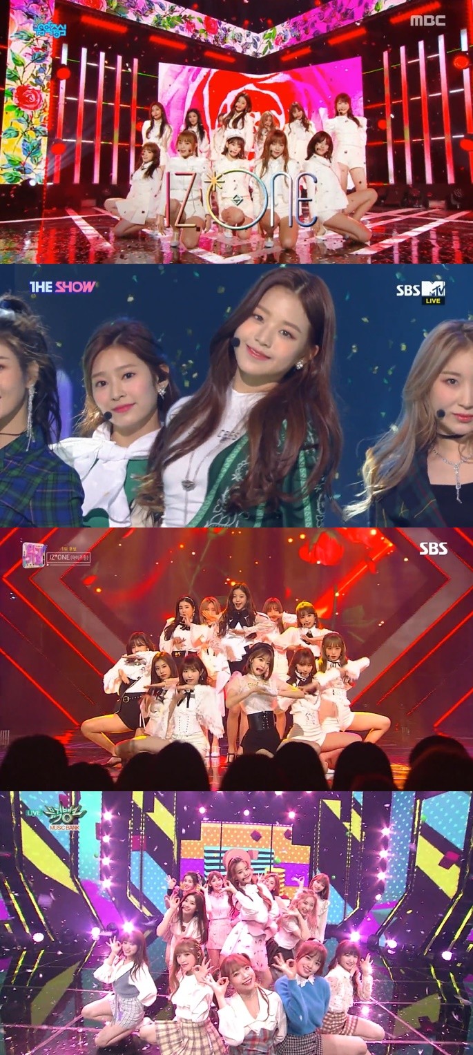 아이즈원은 Mnet 음악프로그램 '엠카운트다운'(이하 ‘엠카’)에서 타이틀곡 '라비앙로즈'로 대망의 1위를 차지했다. 신인이라면 누구나 꿈꾸는 음악방송 1위 트로피를 데뷔 후 단 11일 만에 손에 넣은 아이즈원은 이후에도 SBS MTV ‘더쇼’에서 2주 연속 정상에 오르며 음악방송 3관왕 타이틀을 얻었다.