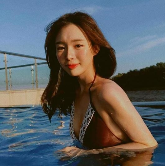 공개된 사진 속 김진아는 야외 수영장에서 비키니 입은 모습이다.