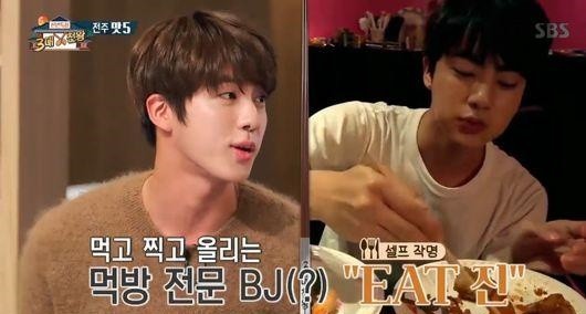 이날 먹방 촬영을 즐기냐는 질문에 진은 “많이 먹어서 직접 잇(EAT)진이라는 별명을 지었다”며 “평소 자주 먹방을 촬영해서 인터넷에 공개한다. 공식 블로그에도 직접 만든 요리와 먹방을 올린다”고 남다른 먹방 사랑을 자랑했다.