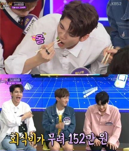 워너원은 과거 회식 자리에서도 레전드 먹방을 했던 일화를 공개했다. 윤지성은 멤버 전원과 매니저 두 분이 함께 회식했을 때 152만 원이 나왔다고 충격 고백을 했다.