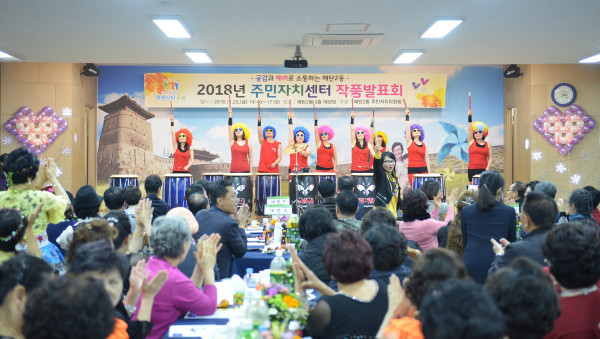 경기 수원시 영통구 매탄2동 주민자치센터는 최근 올해를 마무리하며 '주민자치센터 작품발표회'를 개최했다. 이날 행사에는 시의원, 구청장, 매탄2동 유관기관단체장 등 초청내빈 20여명이 참석한 가운데 주민자치센터 프로그램 수강생 150여명이 한 해 동안 갈고 닦은 솜씨를 뽐냈다. 사진은 참여자들이 난타 공연을 선보이는 모습. (사진제공=영통구청)