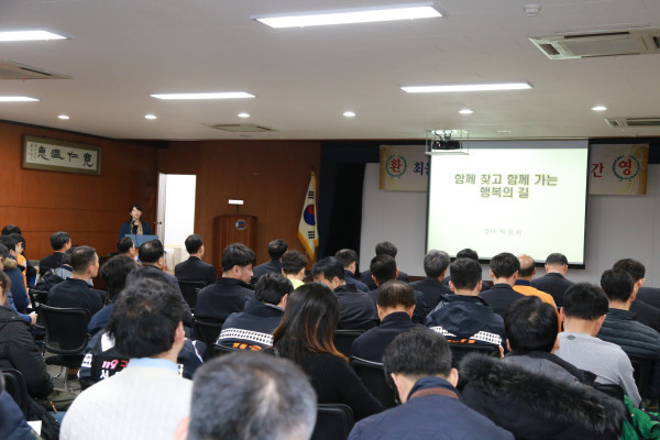 서울 영등포소방서는 26일 본서 4층 강당에서 전직원을 대상으로 한국양성평등교육진흥원 전문강사 박정미씨를 초빙해 ‘함께 찾고 함께 가는 행복의 길’라는 주제로 인권교육을 실시했다. 사진은 박정미 강사가 교육을 진행하는 모습. (사진제공=영등포소방서)