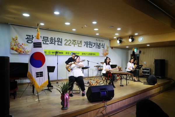 광진구가 후원하고 광진문화원이 주최하는 ‘광진문화원 개원 22주년기념식’이 지난 23일 광진문화원 공연장에서 개최됐다. 이번 기념식은 개원 22주년을 맞아 문화원의 발전을 도모하고 풍요로운 예술문화 도시 광진을 만들기 위해 마련됐다. 사진은 광진문화원 국악예술단 ‘창작집단 The늠’이 공연을 선보이는 모습. (사진제공=광진구청)