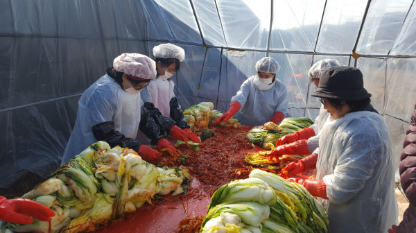 경기 의정부시 의정부2동은 지난 22~23일 양일간 진도농원에서 자매결연지인 곡성군 오산면 새마을 부녀회원들을 초청해 절임배추 김장담그기 행사를 가졌다. 사진은 참여자들이 열심히 김장을 하고 있는 모습. (사진제공=의정부시청)