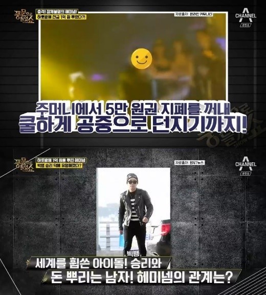 일명 '헤미넴'은 한 강남 클럽서 돈을 뿌려 주목을 받았다. 이에 연예부 기자는 "'헤미넴'이 유명세를 타게 된 건 빅뱅의 멤버 승리 씨 때문이다"라고 전해 궁금증을 자아냈다.