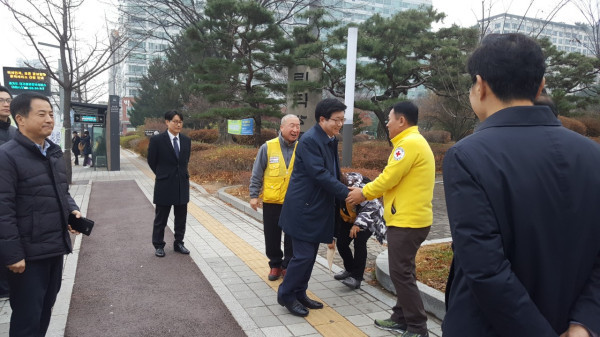 경기 수원시는 27일 강원도 원주 소금산 일원에서 수원시재난안전네트워크 회원 120여명이 참석한 가운데 재난대응 역량강화를 위한 워크숍을 열었다. 사진은 염태영 시장이 ‘재난대응 역량강화 워크숍’을 떠나는 재난안전네트워크 회원들을 격려하고 있는 모습. (사진제공=수원시청)