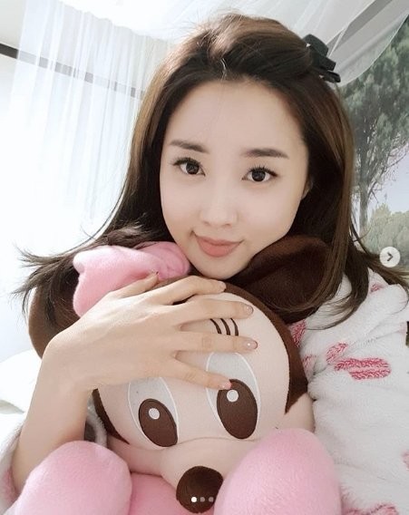 사진에는 잠옷을 입고 인형을 들고 있는 황미나의 모습이 담겨있다. 사랑스러운 미모가 시선을 사로잡는다.