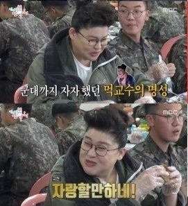그는 이어 군부대에서 씨앤블루 이정신을 만났다. 이정신은 "올해 7월에 입대했다. 방송 잘 보고 있다"고 이영자를 반가워했고 이영자는 "눈빛이 살아있다. 나라를 맡길 만하다"고 인사했다.