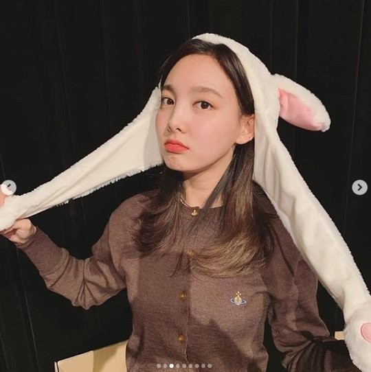 사진 속 나연은 토끼 모자를 착용하고 있다. 토끼 귀를 장착한 나연은 다양한 표정과 포즈로 귀여움을 한껏 뽐냈다.