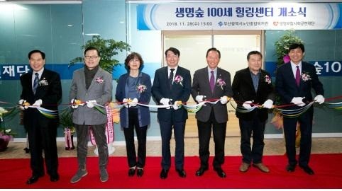부산시(시장 오거돈)은 지난28일 연제구 연산동에 있는 부산시노인종합복지관에서 부산시와 생명보험사회공헌재단, 유관기관 관계자 등 100여 명이 참여한 가운데 ‘생명숲 100세 힐링센터’ 개소식을 개최하고 본격 운영에 들어간다고 밝혔다.
