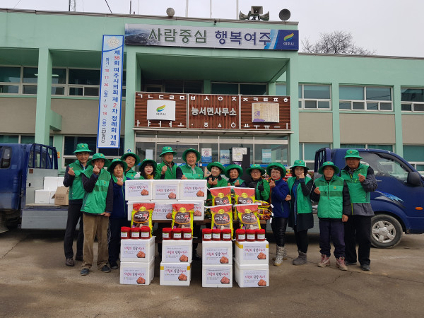 경기 여주시 능서면 남·여 새마을지도자회는 28일 지역내 어려운 이웃들을 돕기 위해 김장김치 30박스와 고추장 100통, 쌀 64포를 어려운 이웃에게 전달하는 ‘사랑 나눔 행사’를 가졌다. 사진은 행사에 참여한 관계자들이 기념촬영을 하는 모습. (사진제공=여주시청)