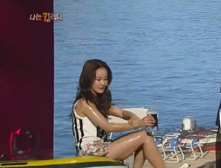김지민은 과거 한 방송에서 김지민은 민소매 티와 짧은 바지를 입고 등장해 시선을 강탈했다.