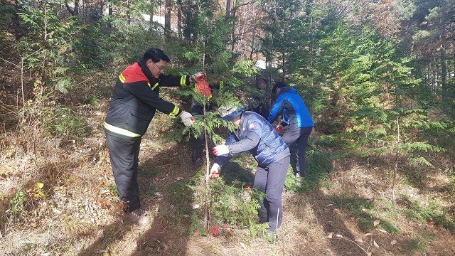 이날 행사에는 산림 공무원, 산림조합 및 산림법인, 시민 등 50여명이 참여해 가지치기, 덩굴제거, 비료주기, 산지정화, 산불예방 캠페인 등 다양한 숲 가꾸기 체험을 했다.