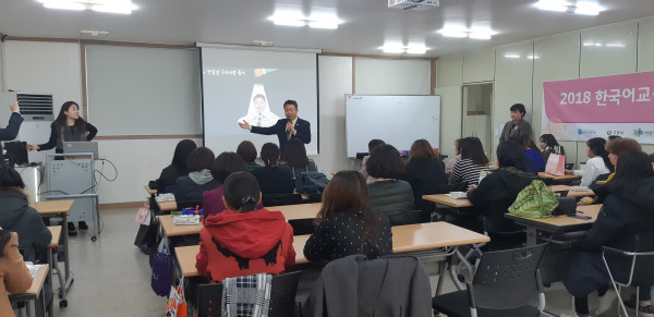 경기 구리시는 최근 건강가정·다문화가족지원센터 교육장에서 결혼 이민자 한국어 교실 수강생 40명이 모인 가운데, 수료식을 개최해 그동안의 성과를 공유하고 격려했다. 사진은 이날 수료식에 참여한 안승남 시장이 축사를 전하는 모습. (사진제공=구리시청)