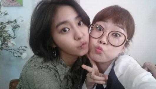 사진은 MBC ‘섹션TV 연예통신’ 리포터인 박슬기가 주말드라마 ‘결혼계약’에서 열연을 선보인 유이를 인터뷰 한 후 촬영한 인증샷. 유이와 박슬기는 입술을 모은 채 깜찍한 애교 표정을 선보이고 있다.