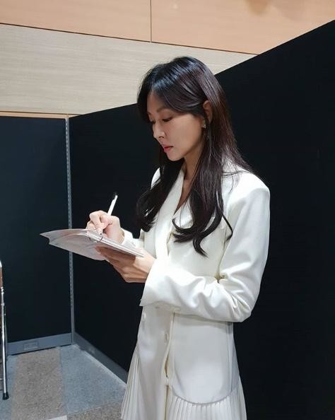 김소연은 지난달 30일 자신의 인스타그램에 한 장의 사진을 게재했다. 공개된 사진 속 김소연은 흰색 슈트를 입고 대기실에 서 있는 모습이다.