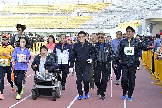 추운 날씨에도 불구하고 5,500여 명의 선수들과 김일권 양산시장을 비롯한 공무원과 시 소속 배구․탁구 선수들도 레이스에 참가해 눈길을 사로잡았다.