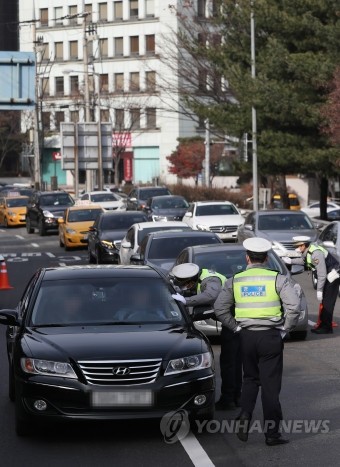 경찰이 한 달간 전좌석 안전띠 착용 의무 위반에 대한 특별단속을 실시한 2일 오전 서울 서초IC 인근 도로에서 전좌석 안전띠 미착용 단속을 하고 있다.