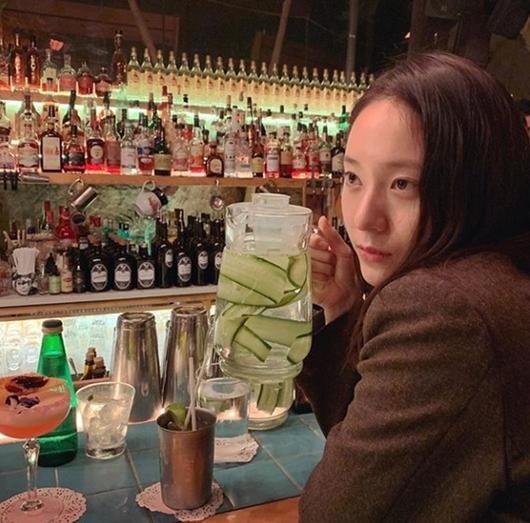 공개된 사진에는 오이가 들어간 물병을 들고 있는 정수정의 모습이 담겨 있다. 정수정은 민낯에 가까운 수수한 모습에도 매끈한 무결점 피부와 오똑한 이목구비를 자랑하고 있어 시선을 사로잡는다.