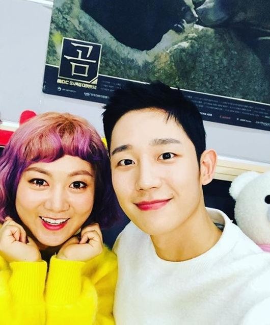 박나래는 지난 1일 자신의 SNS에 ""#나혼자산다 #사심 #죄송합니다 #감사합니다 #정해인 #박나래 #정말팬심 #첫눈같은분 #떨렸음 해인씨 고생하셨어요. 정말 멋지세요. 부담줘서 미안해요"라는 글과 함께 사진을 게재했다.